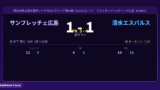 ボールを支配しながら無得点に終わるという構図は、今の広島の課題を象徴している。決定力・セットプレーの精度・一発でゴールを奪い切る強さ——その全てが問われている。9試合を終えて4勝5敗(PK勝利1含む)、WESTグループ7位に沈む現状を打開するには、次節(清水戦)で必ず結果を出すしかない。
