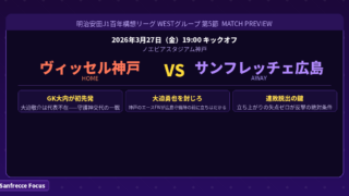 【マッチプレビュー】連敗脱出へ、聖地ノエスタへ挑む——GK大内が守護神として初陣、大迫勇也の脅威をどう封じるか 神戸 vs 広島