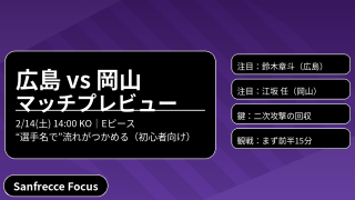 【マッチプレビュー】サンフレッチェ広島 vs ファジアーノ岡山(2/14)|注目選手と見どころを初心者向けに整理